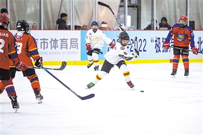 12月11日,北京梦想ING队球员庞尧天(中)在比赛中射门。近日,北京市青少年冰球俱乐部联赛正如火如荼地进行,该项赛事旨在发挥对北京青少年冰球运动的带动作用,助燃冬奥冰球热情,为后冬奥时期北京冰球运动发展打下基础。新华社记者 吴壮 摄 《中国教育报》2021年12月13日第1版 版名:要闻 作者:新华社记者 吴壮