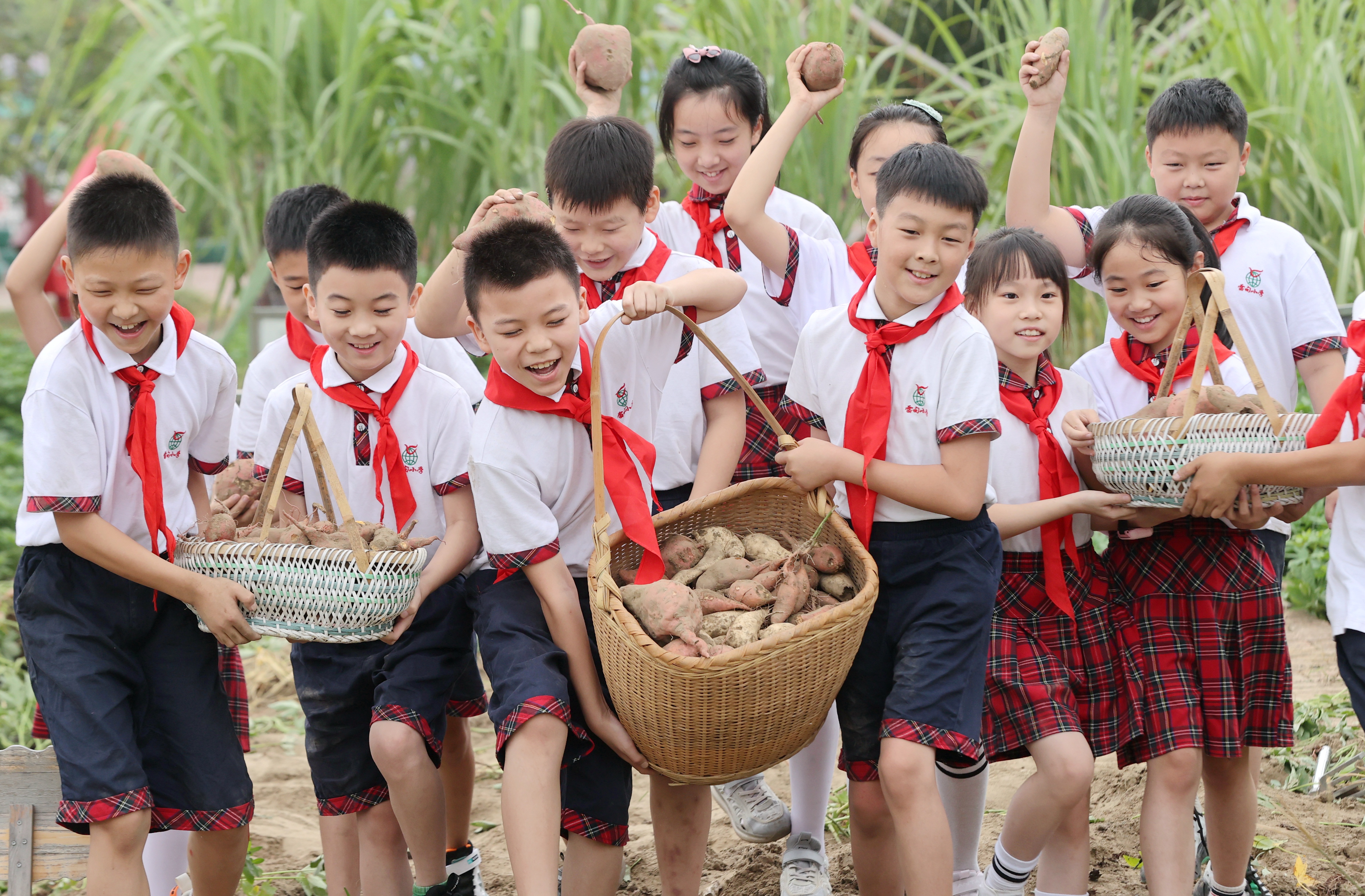 学生在校园农场搬运番薯。通讯员 谢尚国 摄 学生在校园农场挖番薯。通讯员 谢尚国 摄 学生在校园农场挖番薯。通讯员 谢尚国 摄 9月1日,浙江省湖州市德清县雷甸镇中心小学开展以劳动实践教育为主题的“开学第一课”,学生们参加收番薯、割甘蔗、蔬菜浇水等特色劳动课程,感受劳动的艰辛和丰收的快乐,培养勤俭节约、热爱劳动的好习惯。今年以来,德清县积极探索学科课程与劳动实践教育相结合的教育模式,鼓励各中小学校开设校园农场,定期组织学生开展劳动实践活动。中国教育报-中国教育新闻网通讯员 谢尚国 摄