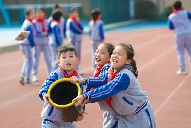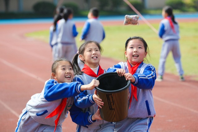 学生们在进行“小投手”趣味游戏。通讯员 王正 摄 学生们在进行“小投手”趣味游戏。通讯员 王正 摄 学生们在踢足球。通讯员 王正 摄 学生们在体验“套圈”游戏。通讯员 王正 摄 学生们在体验“同心弹弹圈”游戏。通讯员 王正 摄 学生们在跳绳。通讯员 王正 摄 2021年以来,浙江省湖州市德清县三合中心学校落实“双减”政策,利用校内社团丰富的资源优势,在大课间开设各式各样的体育运动类课程,促进学生健康成长。通讯员 王正 摄 作者:王正