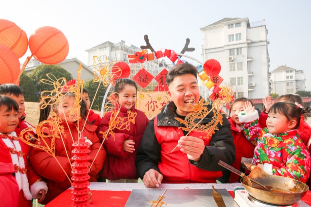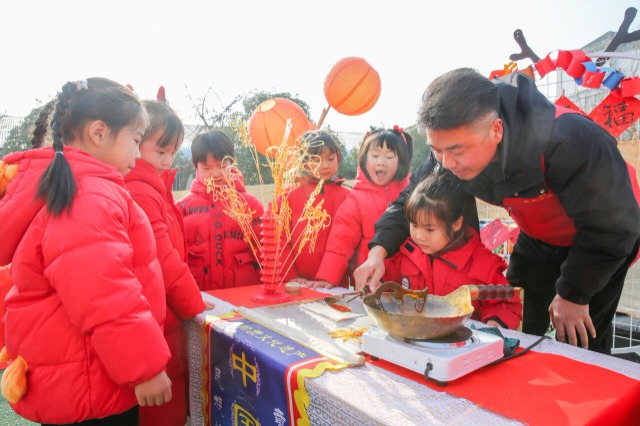 小朋友们在观赏糖画制作 徐慧 摄 小朋友们在体验糖画制作 徐慧 摄 小朋友们在学习做传统手工年糕 徐慧 摄 2024年1月12日,江苏省如皋市城南街道新时代文明实践所、新华社区妇联联合新华幼儿园,举办“传统游园会 欢乐迎新春”活动,小朋友观赏糖画制作、学习做年糕、体验剪窗花等,体验传统民俗,喜迎新春佳节。(中国教育报-中国教育新闻网 通讯员 徐慧 摄)
