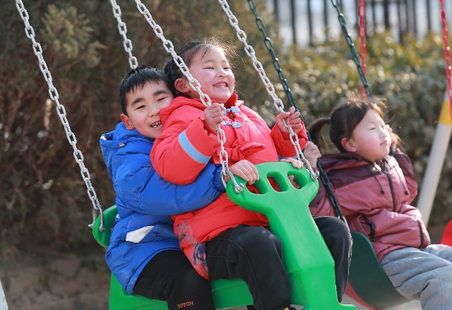 “来来来,看镜头,一、二、三……茄子!”一群小脑袋和老师挤在一起,快门按下,笑容定格,照片记录了河北省涞水县三坡学区马各庄小学三年级孩子们期末“发奖”的快乐时光。 1月16日,涞水县三坡学区都衙小学幼儿园的孩子们在开心玩耍,他们的背后是去年夏季遭遇洪灾的教学楼。中国教育报-中国教育新闻网记者 张学军 摄 这是“23·7”暴雨洪灾之后马各庄小学异地安置入学的第一个期末,教室内,孩子们拿出一个学期的积累,从每周班级奖状,到每月学校奖状,再到期末综合评价奖章,大家互相翻看彼此的“战果”,比比谁最多、哪种最稀有,叽叽喳喳谈论着一个学期的成长和收获。心怡同学本学期共得到了139个奖状,稳居奖状榜首。 “我觉得我这个学期最大的进步就是跑得更快了,因为这里的操场比我们以前学校的大,我还第一次拿到了梦寐以求的‘健康好少年’,所以特别开心。”心怡展示着心爱的奖章,嘴角上扬,眼神是学校操场的方向。 1月16日,涞水县三坡学区都衙小学幼儿园的孩子们在开心玩耍,他们的背后是去年夏季遭遇洪灾的教学楼。中国教育报-中国教育新闻网记者 张学军 摄 俊杰同学共得到116个奖状,数量比上学期明显增多,他非常喜欢本学期的新学科《科学》,并凭借自己的努力收获“善学”“追梦”两项奖章:“我非常喜欢这里的实验室,我觉得科学实验特别有意思,长大以后我要当物理学家,为我们国家的航天事业做贡献!”“我希望我们的新学校建好之后也有一个特别棒的实验室!”俊杰谈论着令他新奇和热爱的科学课,对新学校满怀期待。 寒假将至,新年马上就要来临。谈及新年愿望,同学们不约而同地盼望着早日回到重建好的新学校。 “我希望我们的新学校更大!” “我希望学校里能有许多花和各种叶子的树!” “我希望新学校的图书馆里可以有更多的书!” “我希望新学校更漂亮!” …… 1月16日,涞水县三坡学区紫石口小学操场上同学们在踢足球。去年夏天被洪水冲毁的操场和围墙已修缮一新。中国教育报-中国教育新闻网记者 张学军 摄 如今,马各庄小学重建工程已经进入招标阶段,计划于2月份开工,8月份竣工,9月开学季,孩子们就可以在新学校里学习了。 “等到明年这个时候你们再来马各庄小学,咱们就可以在新学校见面了,学校的校园环境肯定会比以前更好,教学设备也会更先进,到时候一定要再回来看看!”马各庄小学校长张文玲对记者说。 新的三轮车、攀爬架、蹦蹦床、大滑梯……操场上,涞水县三坡学区都衙小学(校中园)幼儿园大班的孩子们开心地玩耍着。虽然兴奋,但他们十分爱惜这些新玩具,从不做任何破坏。他们说,这是他们的新伙伴,他们会好好保护它们。 问起这个学期在幼儿园印象最深的事,孩子们你一言我一语讨论起来。 1月16日,正午的阳光下,涞水县三坡学区紫石口小学的同学们在操场上游戏小憩。去年夏天,该校操场和围墙被洪水冲毁。 “我们幼儿园来了许多次客人,他们都是来捐赠的。” “因为我们的教室夏天被洪水冲了。” “他们为我们买了新的滑滑梯。” “还有许多新玩具。” “还有新的桌椅。” “我想给他们唱歌!” “快过年了,我想请他们到我家吃饭!” “我也想!我要请他们吃大虾,还有饺子!” …… 1月16日,涞水县三坡学区爱心小学食堂,马各庄小学异地就读的学生在吃午饭。 虽然年龄还小,可孩子们清楚地记得叔叔阿姨们,也期待着用自己的方式表达对捐赠者的新年祝福。大虾和饺子,是琳琳最喜爱的食物,看似简单的语言中,流露的是一份真挚的感恩之情。 都衙小学校长尹胜男说:“这个学期我们幼儿园共收到捐款25万余元,不仅在物质上解决了我们的燃眉之急,更重要的是,孩子们悄然成长了,他们懂得了感恩和珍惜,这是非常重要的两种品质,是一笔无法用金钱衡量的财富,是捐赠带给我们的‘附加’收获!” 涞水县三坡学区紫石口小学的操场上,一场迎新春足球赛正在如火如荼进行中。小球员们奋力拼抢,跑位射门,用拼搏意志和协作精神踢进“喜迎龙年”第一球。晴朗的天空,绿色的球场,柔软的草坪,和一群挥汗如雨的小球员们,绘成一幅迎新最美画面。 “我是学校足球队的前锋,我射门很准!我最喜欢的就是踢球,我们每周都有足球课,每天下午老师还会带我们在这里训练。”刚刚为本队赢得1分的六年级1班张豫同学边说边灵活控球,一个完美的花式起球一气呵成。 “我们的操场是这个学期初重建的,学校每天的课间操活动,每周26节体育课,以及各种体育比赛和训练,都是在这里进行。孩子们特别喜欢在操场上玩,每个课间这里满满的都是学生。”紫石口小学校长赵广亮说。 1月16日,特殊的学期结束了,马各庄子小学老师组织在爱心小学异地就读的学生拍照留念。 据赵校长介绍,在“23·7”暴雨洪灾中,紫石口小学操场和围墙全部冲毁,本学期初,县委县政府争取136万元专项资金,为学校新建标准操场,保障学生体育活动不受影响,并在校园西侧修起一条长93米高6.1米的围墙护坡,该护坡可有效抵挡西侧高地雨水入侵,为校园建筑和师生安全筑起坚固屏障。 “龙年有进步!龙年更优秀!龙年要加油!”在孩子们的迎新口号声中,一场足球赛结束,他们三个一群、五个一组,或是在草坪上嬉戏笑闹,或是在跑道上跑步跳绳,操场上充满了欢声笑语。 灾难早已过去,修复如约进行。在这个记录成长的