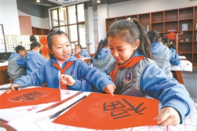 1月25日,雄安史家胡同小学寒假托管服务期间,学生在书法课上交流学习心得。本报记者 单艺伟 摄 ■2024新春走基层 在图书室畅游书海,在书法教室写福字,在音乐教室唱起欢快的歌谣,在劳动教室创作剪纸拉花作品,在操场上尽情游戏、锻炼体能……寒假里,雄安史家胡同小学的学生正在参加丰富多彩的活动。校园里,欢歌笑语声声入耳,每个人脸上洋溢着幸福。 寒假来临,雄安新区推出了一项民生工程、暖心工程:以财政补贴方式,组织雄县、容城县、安新县及新建片区的28所试点中小学,开展“托、管、教”一体的寒假免费托管服务。 雄安史家胡同小学是试点校之一。 “我校学生都是雄安建设者子女,寒假托管为他们解除了后顾之忧,让他们能安心工作。在这里,孩子们开心,家长们放心!”雄安史家胡同小学副校长王映说。 《鸡毛掸子下蛋了》《家里来了豆子人》《奔跑吧,小红花》……阳光照进来,让学校一楼图书室里既明亮又温暖,一(2)班学生王晨瑜等十几个孩子安静地捧着自己喜欢的书本,深深沉浸在书中的故事里。 “剪纸拉花是剪纸艺术中一种比较简单易学的造型工艺。今天,我们要学习制作传统喜庆代表形象——鱼的剪纸拉花。”在劳动教室,教师李璨边讲解边指导学生们动手创作。把一张浅绿色美术纸对折,用剪刀小心裁剪,去除多余部分,再抓住两端轻轻一拉,一个活灵活现的吉庆鱼就展现在面前。“老师老师,看我做得怎么样!”五(1)班学生刘宇迪率先完成作品,兴奋不已。 “叠个千纸鹤,再系个红飘带,愿善良的人们天天好运来……”在艺术楼多功能排练室,由一年级、二年级学生组成的合唱队手持响板、铃鼓和碰铃等乐器,正在跟着歌曲《好运来》的旋律边唱边舞。“现在我要好好学,等过春节的时候在家里唱给爸爸妈妈听。”一(2)班学生王梓琪对记者说。 “祝大家新年快乐,龙年大吉!”在学校书法教室,又是另一番热闹景象。举起自己刚刚写好的福字,三(1)班学生张时芸竺和小伙伴们排成排,录下视频,共同喊出新年祝福。 冬日阳光和煦,气温有所回升,适合户外运动。校园东侧的塑胶跑道上,体育教师王强带着孩子们正在进行多形式跑跳训练。进行完热身运动后,孩子们分成两组进行障碍跑跳训练,不一会儿就浑身冒汗。“这组运动旨在锻炼孩子们的手眼协调力、精神注意力,增强他们的心肺功能,培养竞争、团队意识。”王强说。随后举行的掩护绕桩游戏更是让现场气氛达到高潮,操场上加油声、呐喊声响彻校园。 雄安新区管理委员会公共服务局副局长李玉金介绍,当地今年寒假一共为有需求的群众提供了1.7万多个托管学位(名额),“只要群众有需要,我们一定尽力满足”。 雄安新区推出的这项暖心工程得到了广大家长的欢迎和赞誉。“我跟孩子爸爸工作都比较忙,在孩子放寒假后确实没有时间和精力照顾她。孩子在学校参加托管,可以保持规律的学习、生活习惯,保持良好状态。作为家长,我们很放心、很舒心,感谢学校和老师们的辛勤付出!”雄安史家胡同小学学生家长王瑶专门给该校副校长王映发微信表达谢意。 (中国教育报新春走基层融媒体报道组:陈星 易鑫 禹跃昆 周洪松 单艺伟 陈经宇 执笔:周洪松)