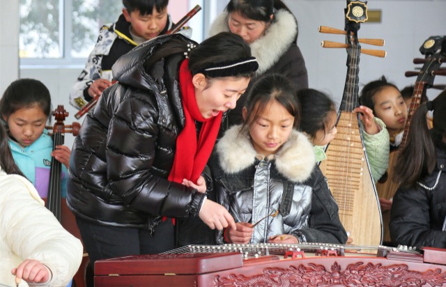 志愿者老师在指导学生学习乐器 周强 摄 志愿者老师在指导学生学习乐器 周强 摄 2024年1月30日,江苏省海安市墩头镇小学教育集团吉庆校区,志愿者老师在指导学生学习乐器。寒假来临,海安市墩头镇小学教育集团开设乐器公益兴趣课堂,丰富当地学生的假期生活,提升孩子们的艺术素养。(中国教育报-中国教育新闻网 通讯员 周强 摄)