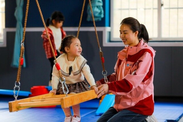 小朋友在老师的陪伴下走平衡木 通讯员 周训超 摄 3月28日,在贵州省黔西市莲城街道莲城社区的托育中心,小朋友在老师的陪伴下玩耍。近年来,贵州省黔西市积极构建普惠安全的托育服务体系,通过公建民营、民办公助等多种形式,鼓励和引导社会力量兴办普惠托育机构,为3岁以下婴幼儿提供全日托、半日托、计时托、临时托等服务,解决广大家庭托育方面的后顾之忧,努力实现幼有所育、不负所托。